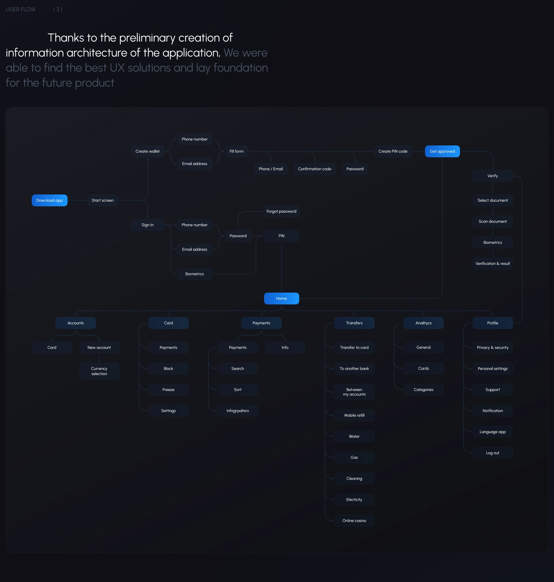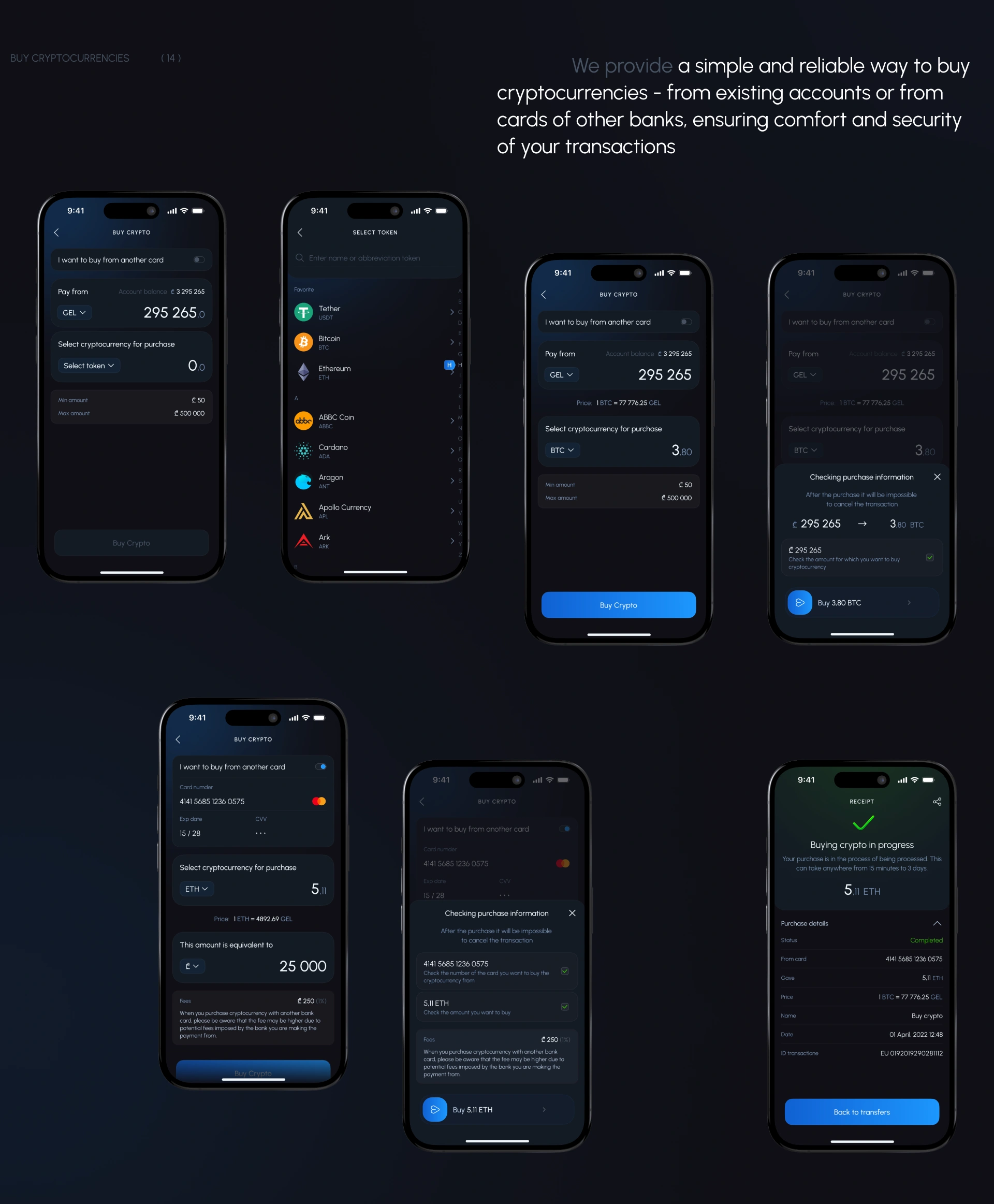 The UX/UI of the mobile application was developed, which implemented a dual logic of use: familiar scenarios for the mass audience and advanced crypto features for advanced users. We provided ux solutions for mobile banking apps.