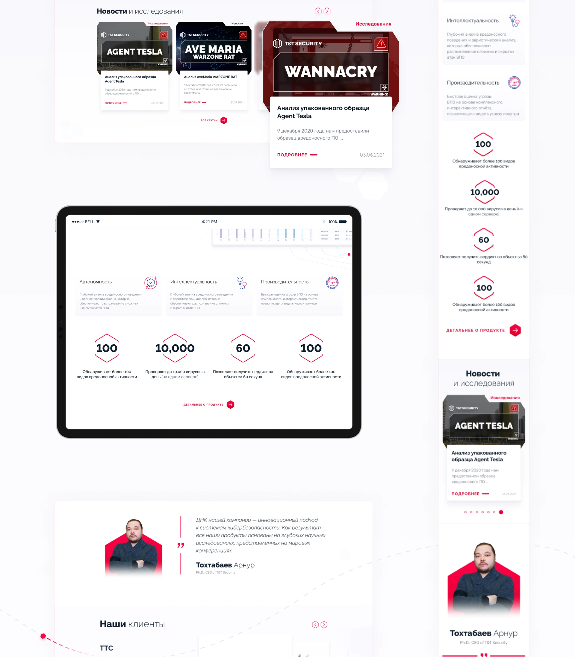T&T Security is a Kazakhstani IT company developing innovative solutions to protect against APT attacks and zero-day threats. The project included ux ui design for cybersecurity products in Kazakhstan and creating corporate websites for b2b services.