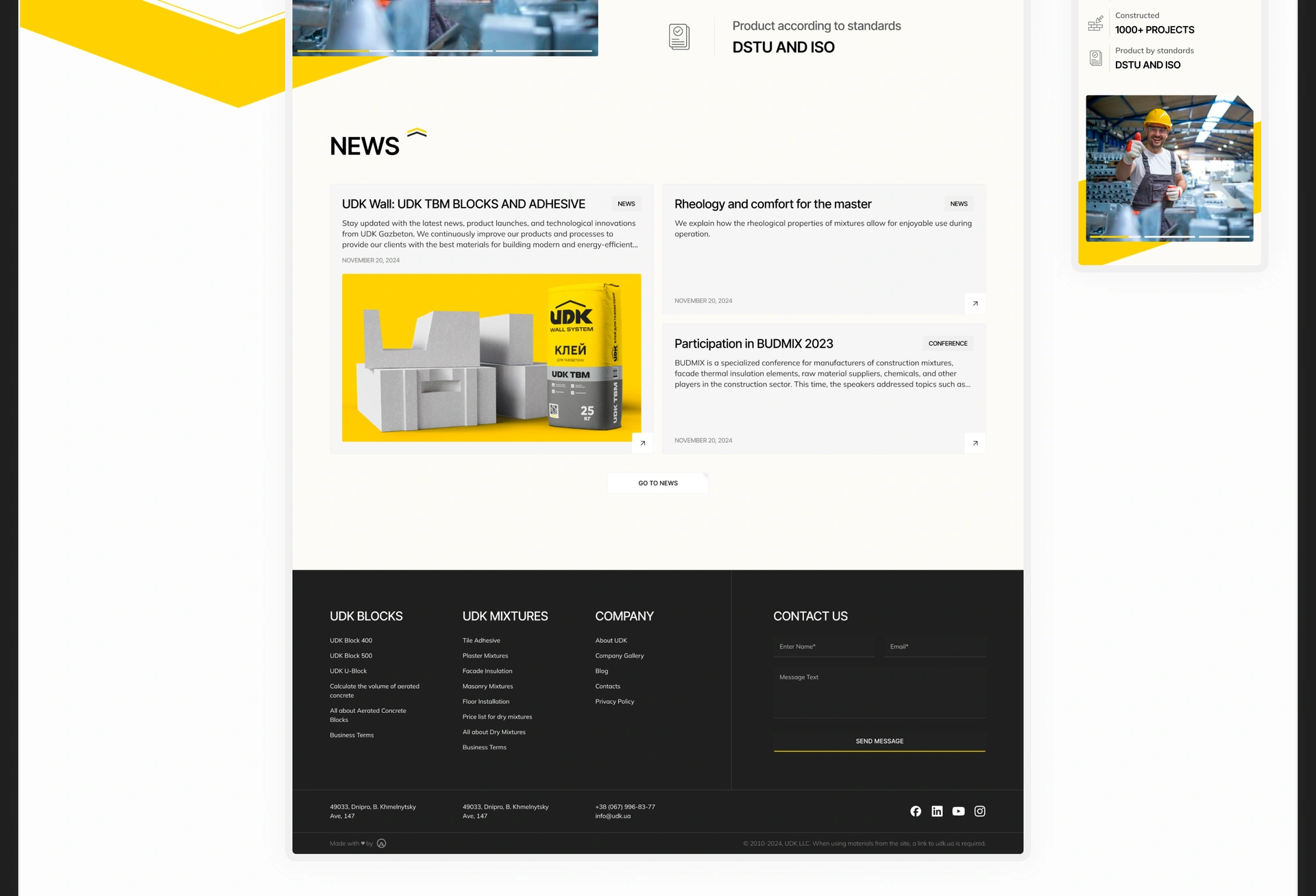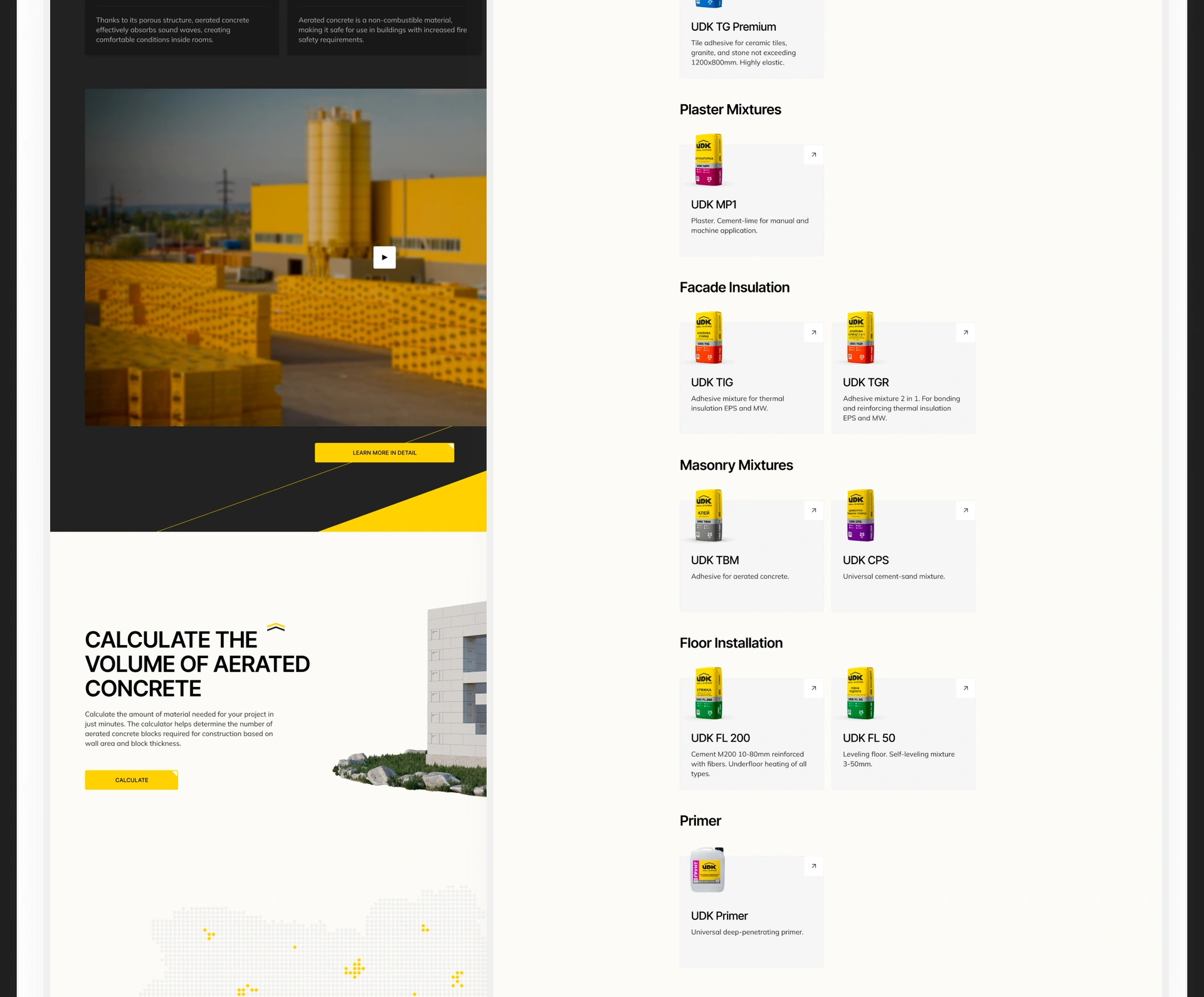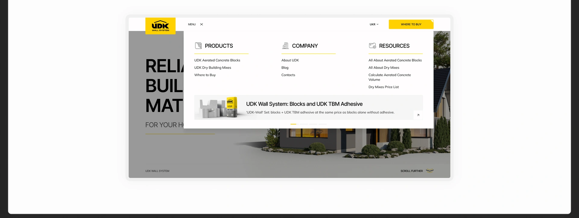 UDK is a leading Ukrainian manufacturer of autoclaved aerated concrete and dry mixes, focused on innovation and quality. As a core partner in the ux ui design for construction industry, we helped the company improve its digital presence to increase efficiency and market recognition. We provided a full end‑to‑end website and brand update for building materials company.