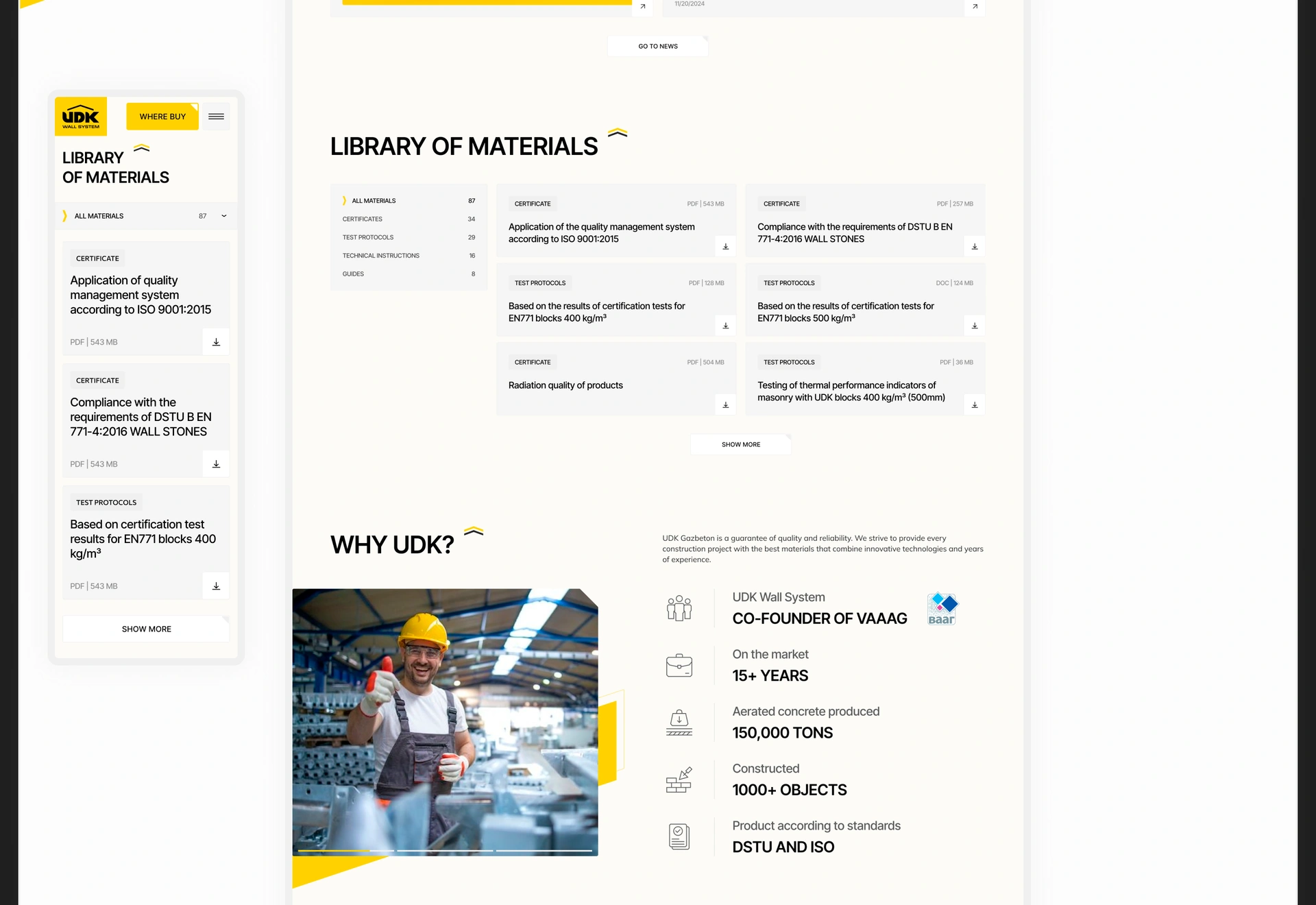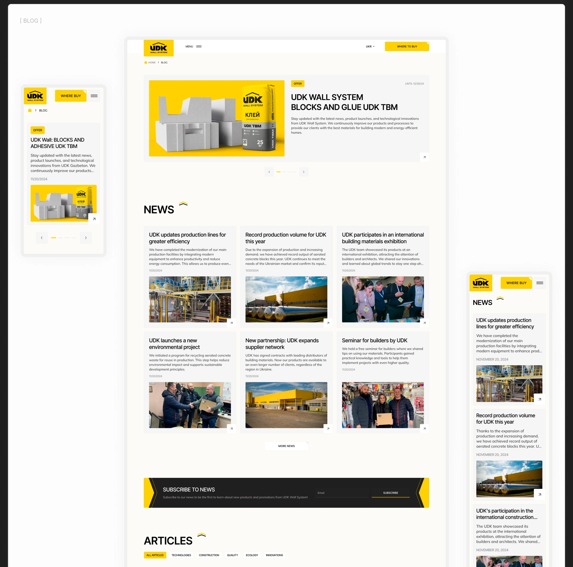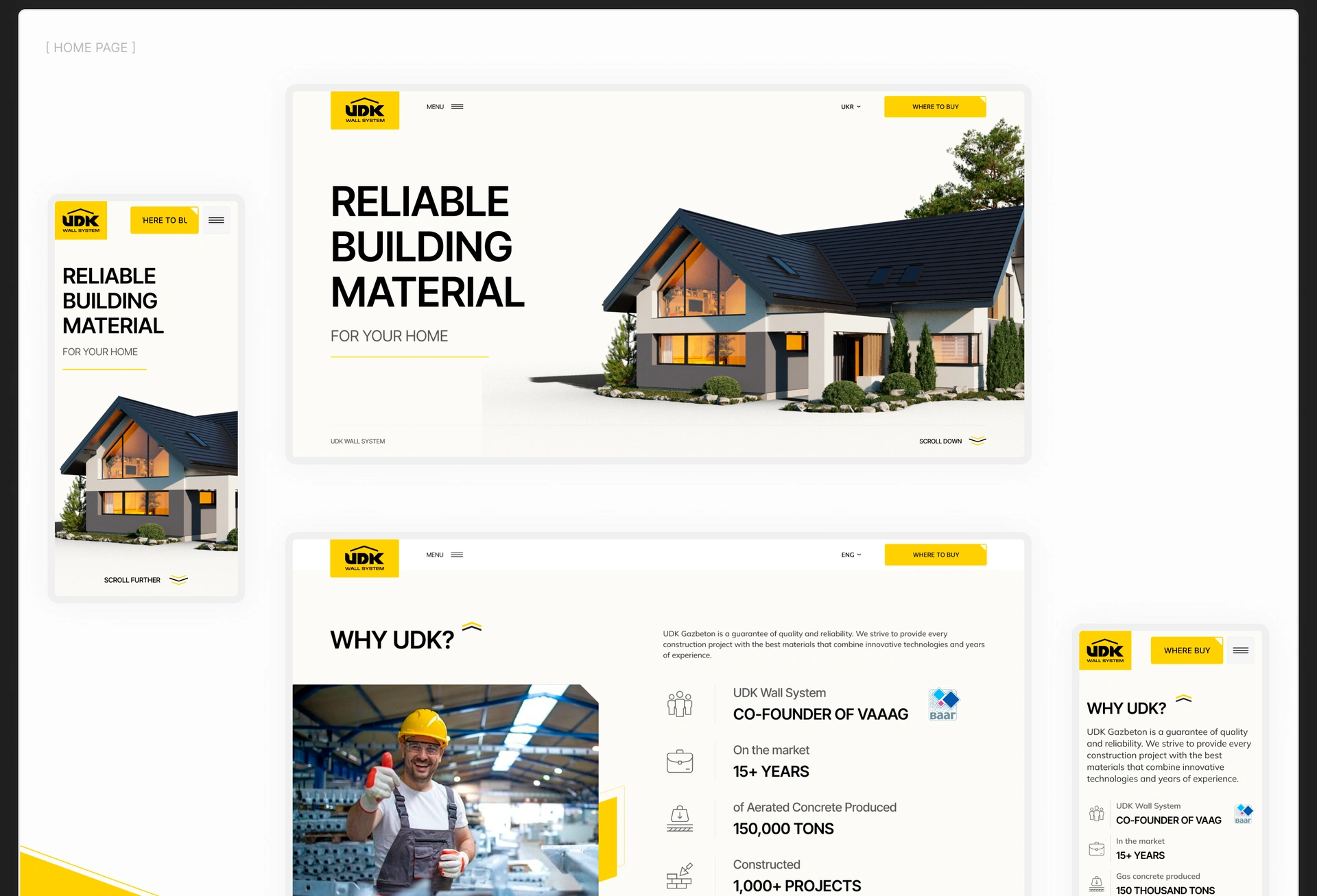 UDK is a leading Ukrainian manufacturer of autoclaved aerated concrete and dry mixes, focused on innovation and quality. As a core partner in the ux ui design for construction industry, we helped the company improve its digital presence to increase efficiency and market recognition. We provided a full end‑to‑end website and brand update for building materials company.