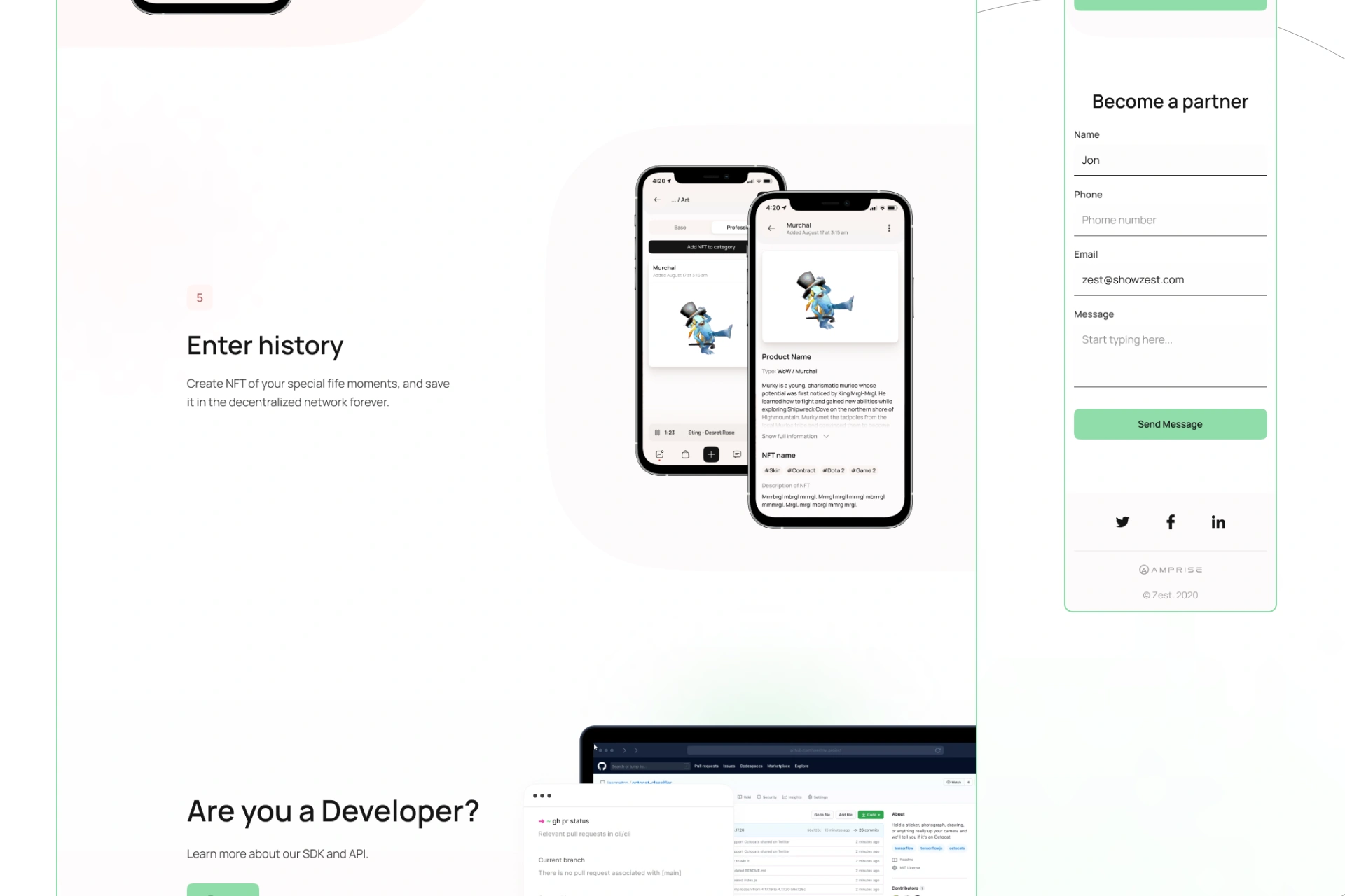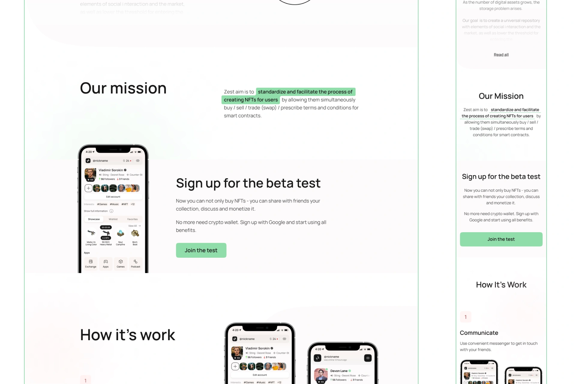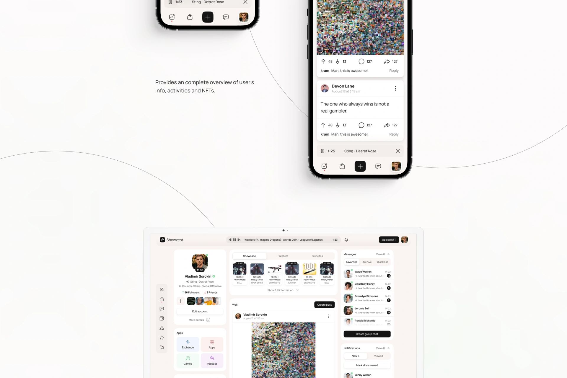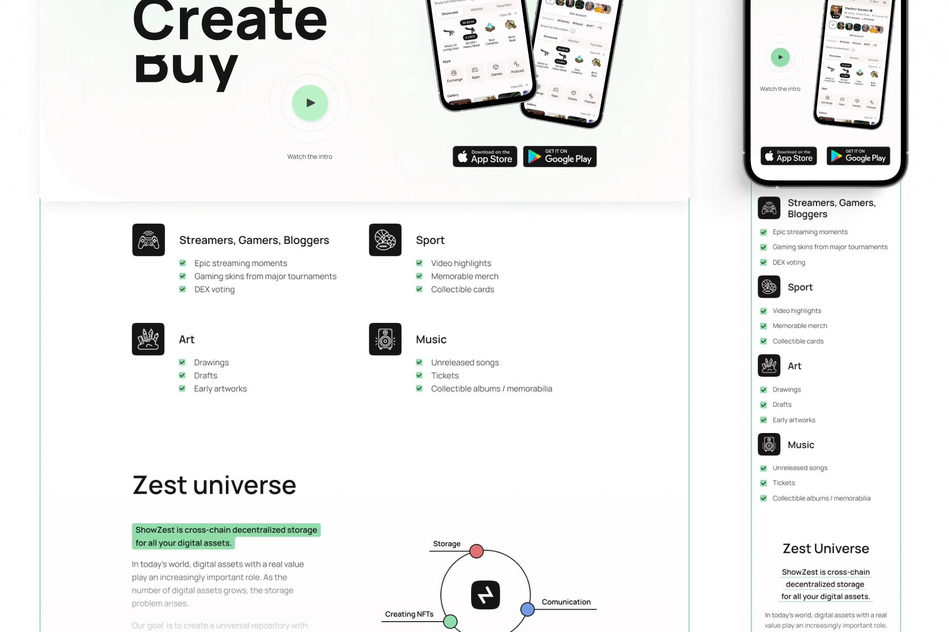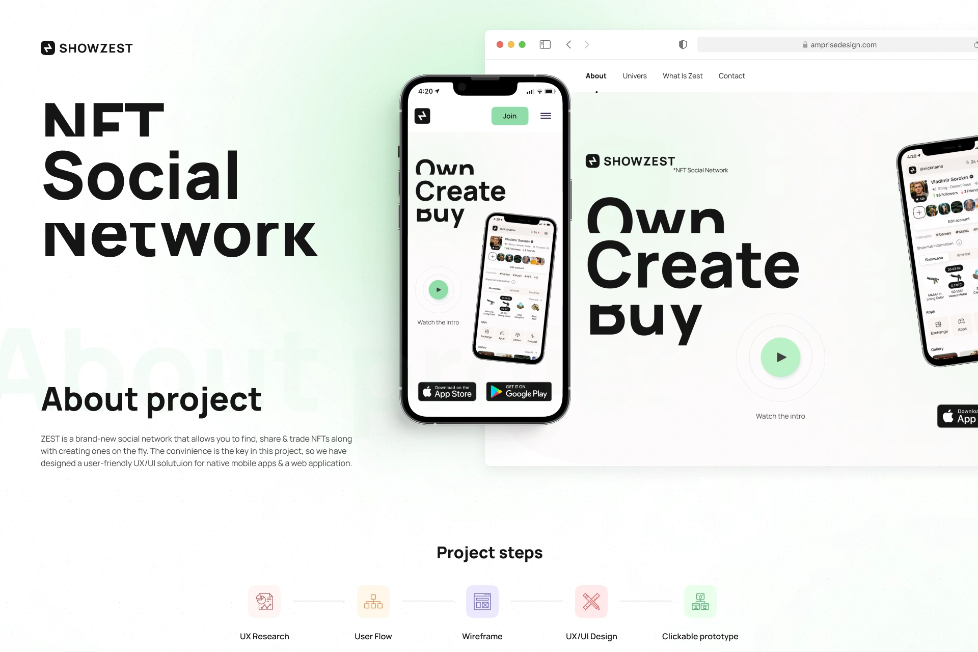 ShowZest — це інноваційна платформа на перетині Web3, соціальних мереж і NFT, яка дозволяє створювати, ділитися, продавати та колекціонувати NFT безпосередньо в інтерфейсі соціальної активності. Проєкт поєднує функціональність NFT-маркетплейсу з інтерактивністю цифрової спільноти. Для реалізації проєкту потрібна була розробка UX UI дизайну соціального NFT-маркетплейсу, а також брендинг і створення айдентики для Web3-стартапів.