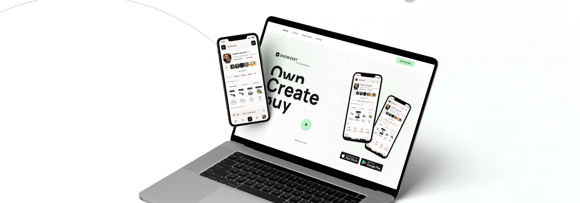 ShowZest — це інноваційна платформа на перетині Web3, соціальних мереж і NFT, яка дозволяє створювати, ділитися, продавати та колекціонувати NFT безпосередньо в інтерфейсі соціальної активності. Проєкт поєднує функціональність NFT-маркетплейсу з інтерактивністю цифрової спільноти. Для реалізації проєкту потрібна була розробка UX UI дизайну соціального NFT-маркетплейсу, а також брендинг і створення айдентики для Web3-стартапів.