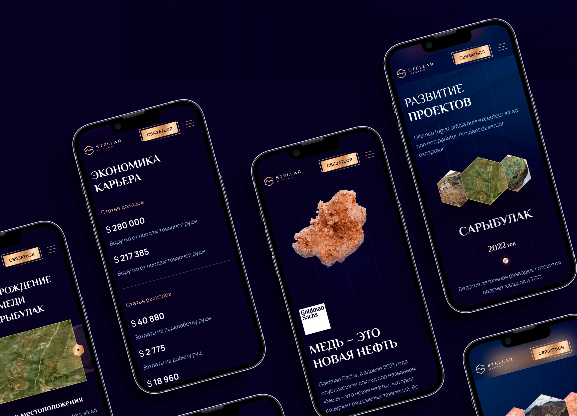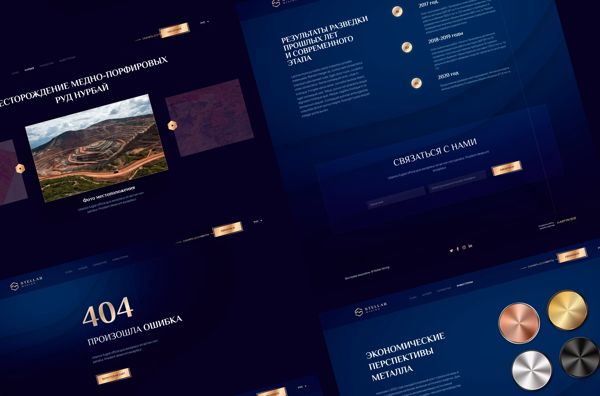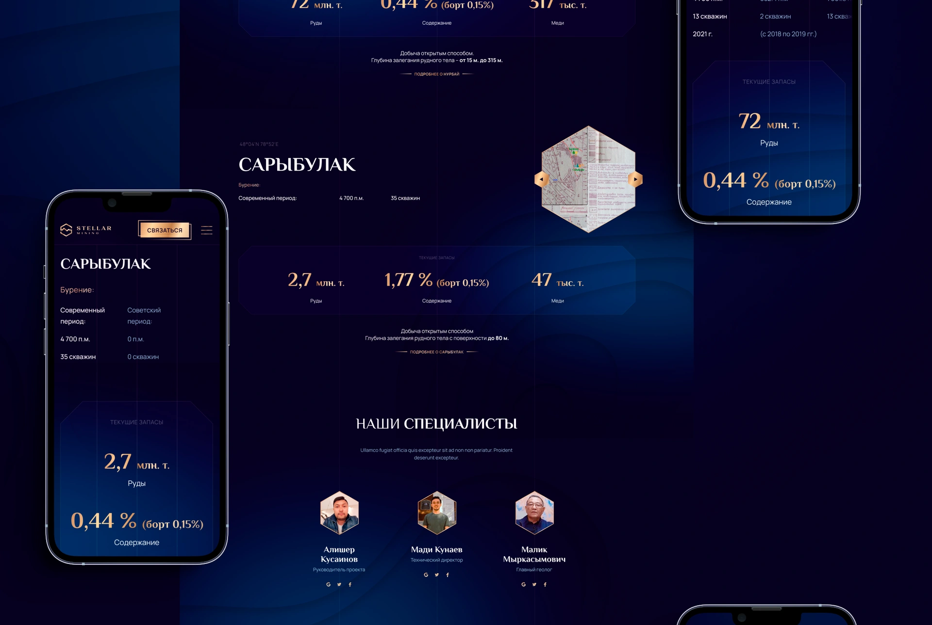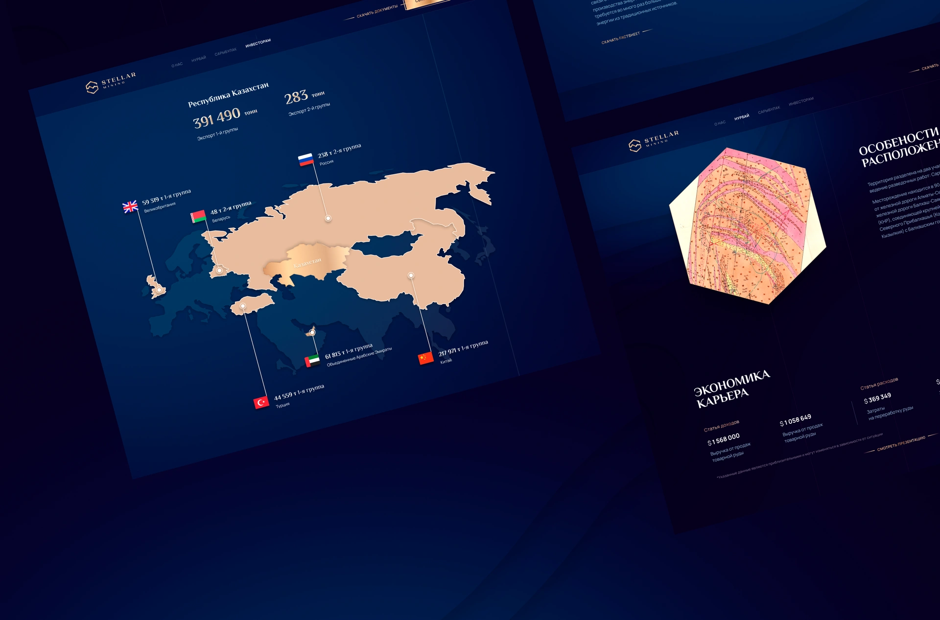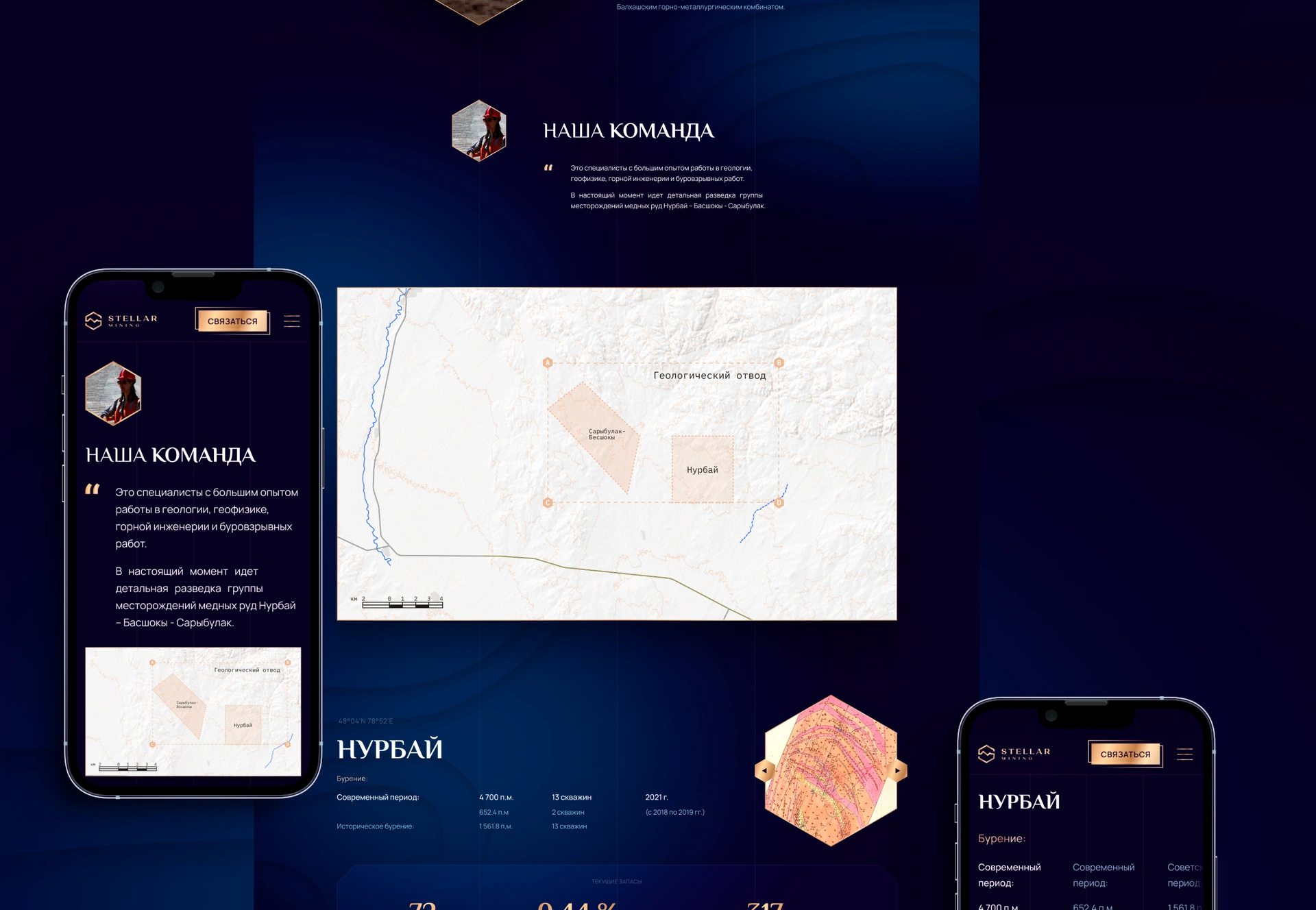 Stellar Mining — казахстанська компанія, що займається пошуком і розробкою порфірових мідних родовищ. Ключові проєкти — Нурбай і Башоки-Сарибулак у північному Прибалхаш’ї — є стратегічно важливими об’єктами, потенціал яких було підтверджено ще за часів СРСР. Сучасні дослідження підтверджують можливість створення нового гірничодобувного кластера з видобутку міді, молібдену та золота. Нашим завданням було створити бренд-айдентику для геологорозвідувального холдингу та сайт, що не лише демонструє масштаб проєктів, але й виступає інструментом для залучення міжнародних інвесторів. Це був повний цикл брендингу та веб-розробки для казахстанського проєкту з глибокою аналітикою, інтерактивними картами та експертними коментарями.