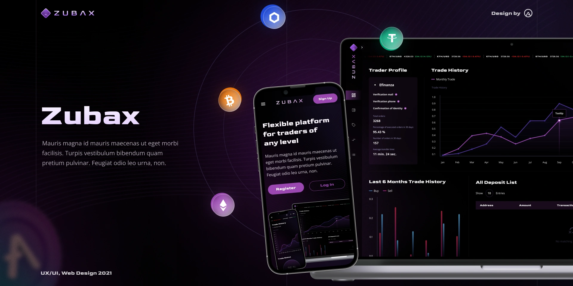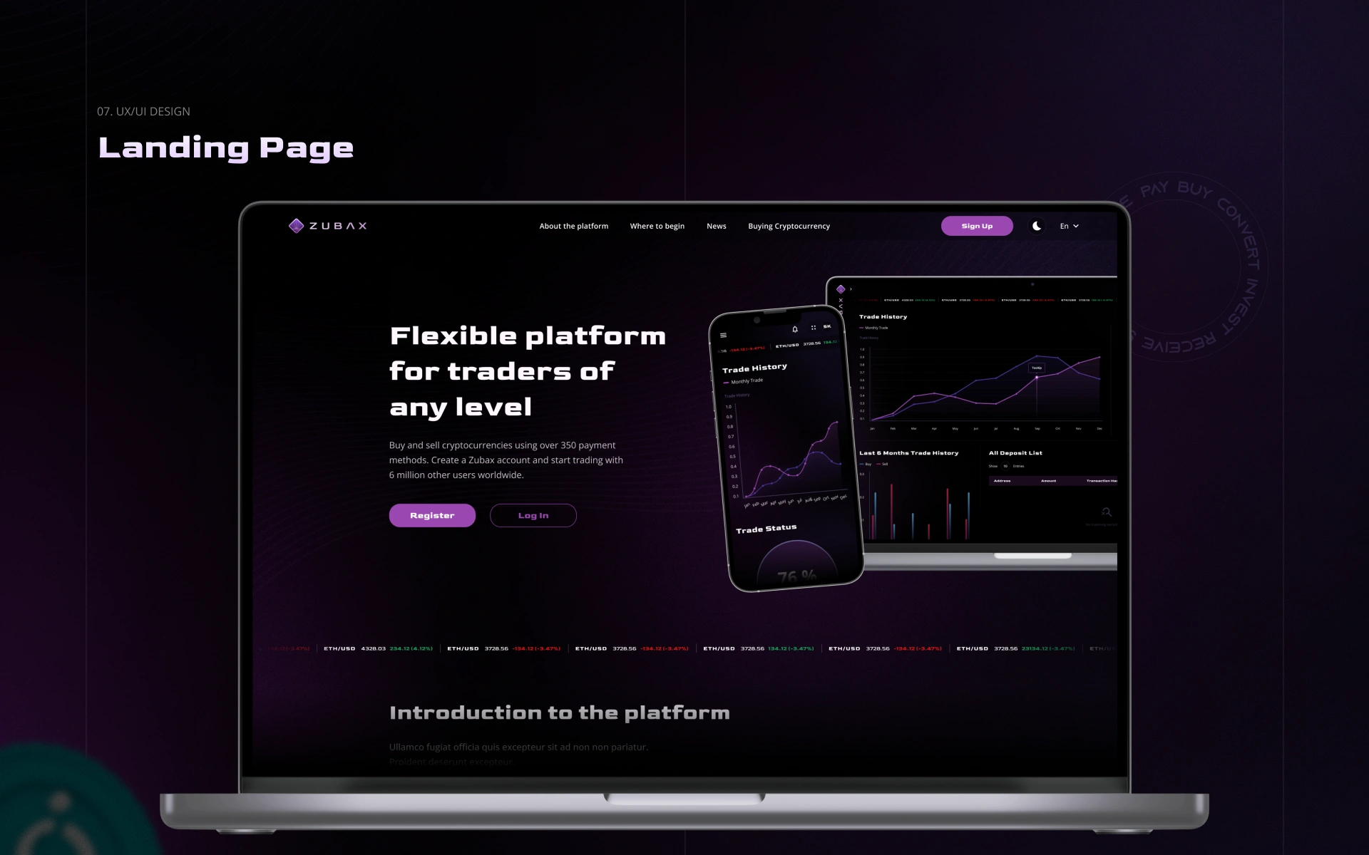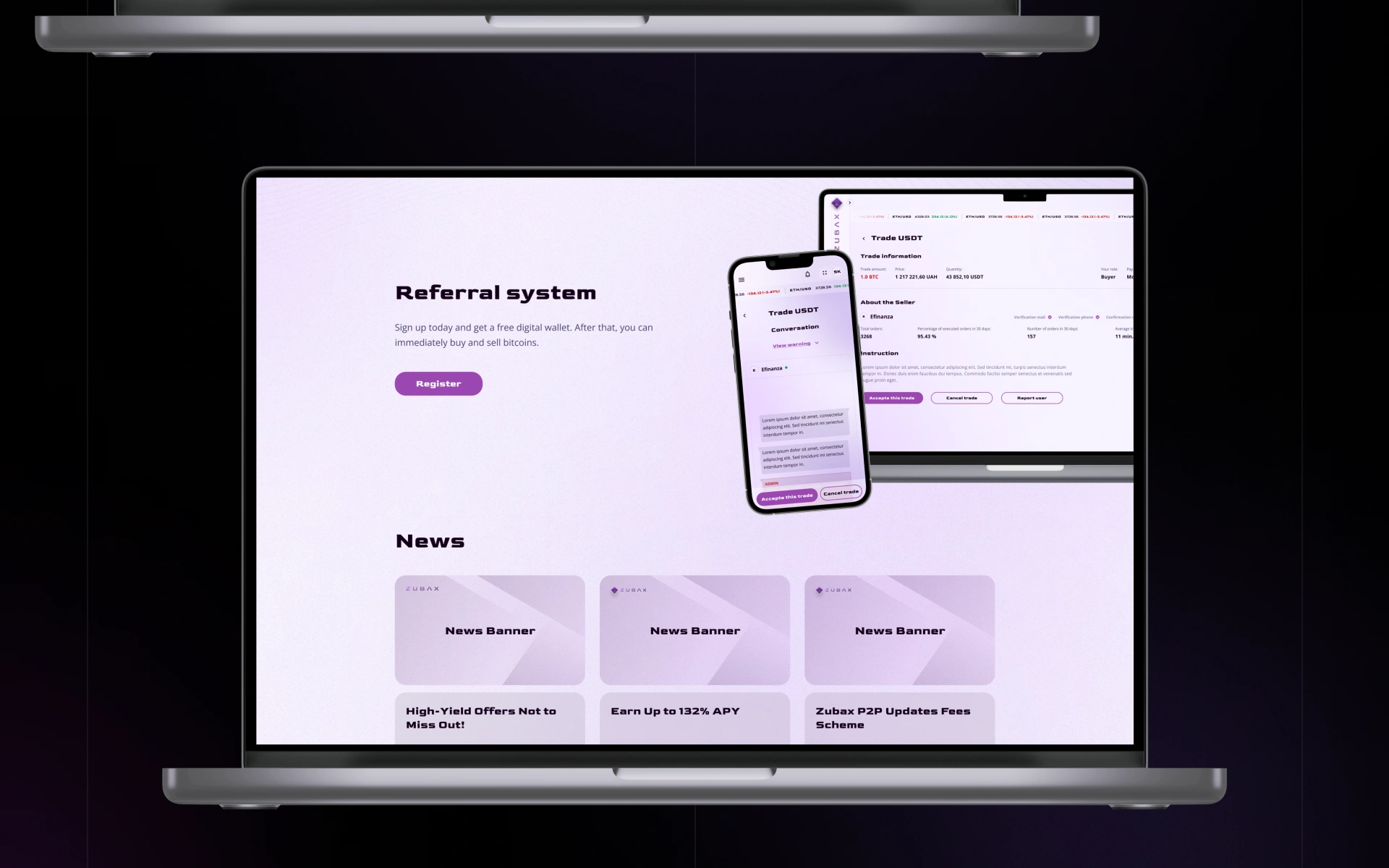 Для Zubax ми створили візуальну та користувацьку основу для криптоплатформи, адаптовану під африканський ринок і молоду цільову аудиторію: